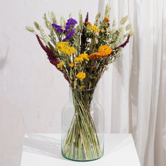 This beautiful collection of dried wildflowers is a colourful addition to any room. Dried flowers are not only great for long-lasting displays, but they are also sustainable – a fantastic present for any occasion. Measures approximately: 50cm